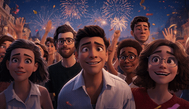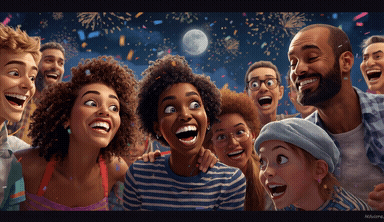 - Für große Gruppen: Ein Highlight-GIF zum Zeitpunkt des Jahreswechsels, z. B. ein spektakuläres Feuerwerk oder ein gemeinschaftliches Prost-Motiv.